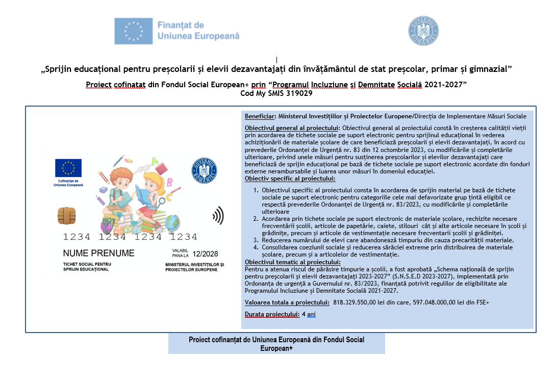 TICHETE SOCIALE PENTRU SPRIJIN EDUCAŢIONAL 2024-2025